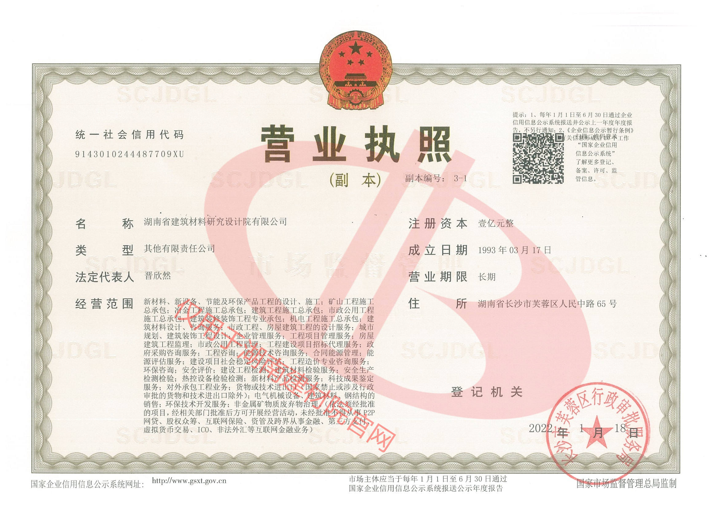 湖南省建筑材料研究設(shè)計(jì)院有限公司的前身為湖南省建筑材料研究設(shè)計(jì)院,成立于1958年,是1993年全國首批榮獲國家建材行業(yè)設(shè)計(jì)、工程總承包甲級(jí)資質(zhì)的四個(gè)科研設(shè)計(jì)單位之一。